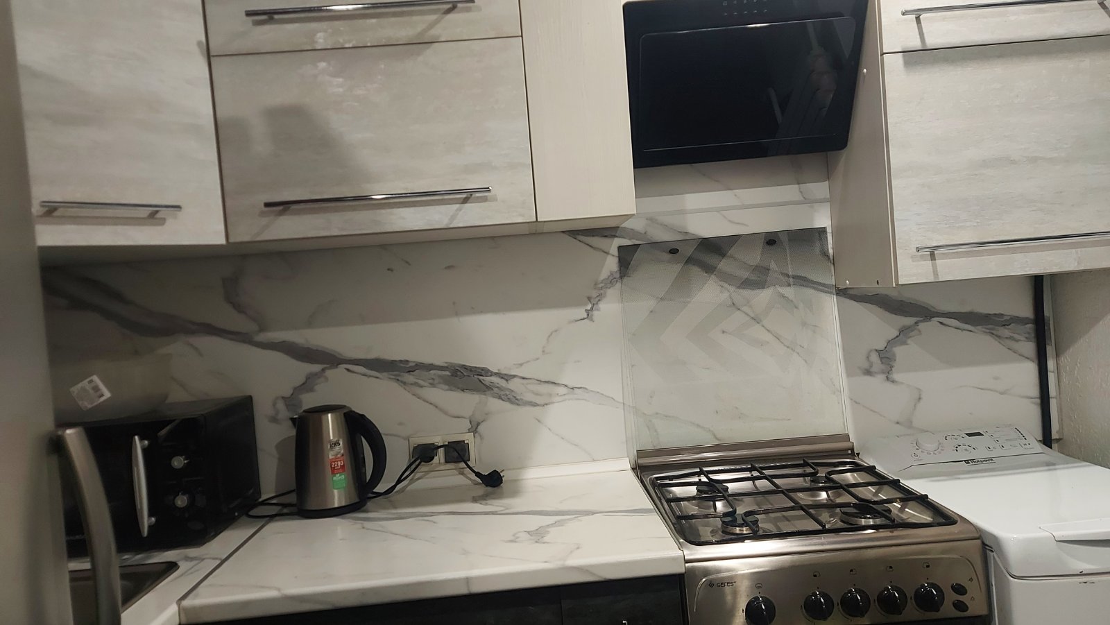 Телевизор, Постельное бельё, Мыло, Туалетная бумага, Стиральная машина, Душевая кабинка, Холодильник, Микроволновая печь, Посуда